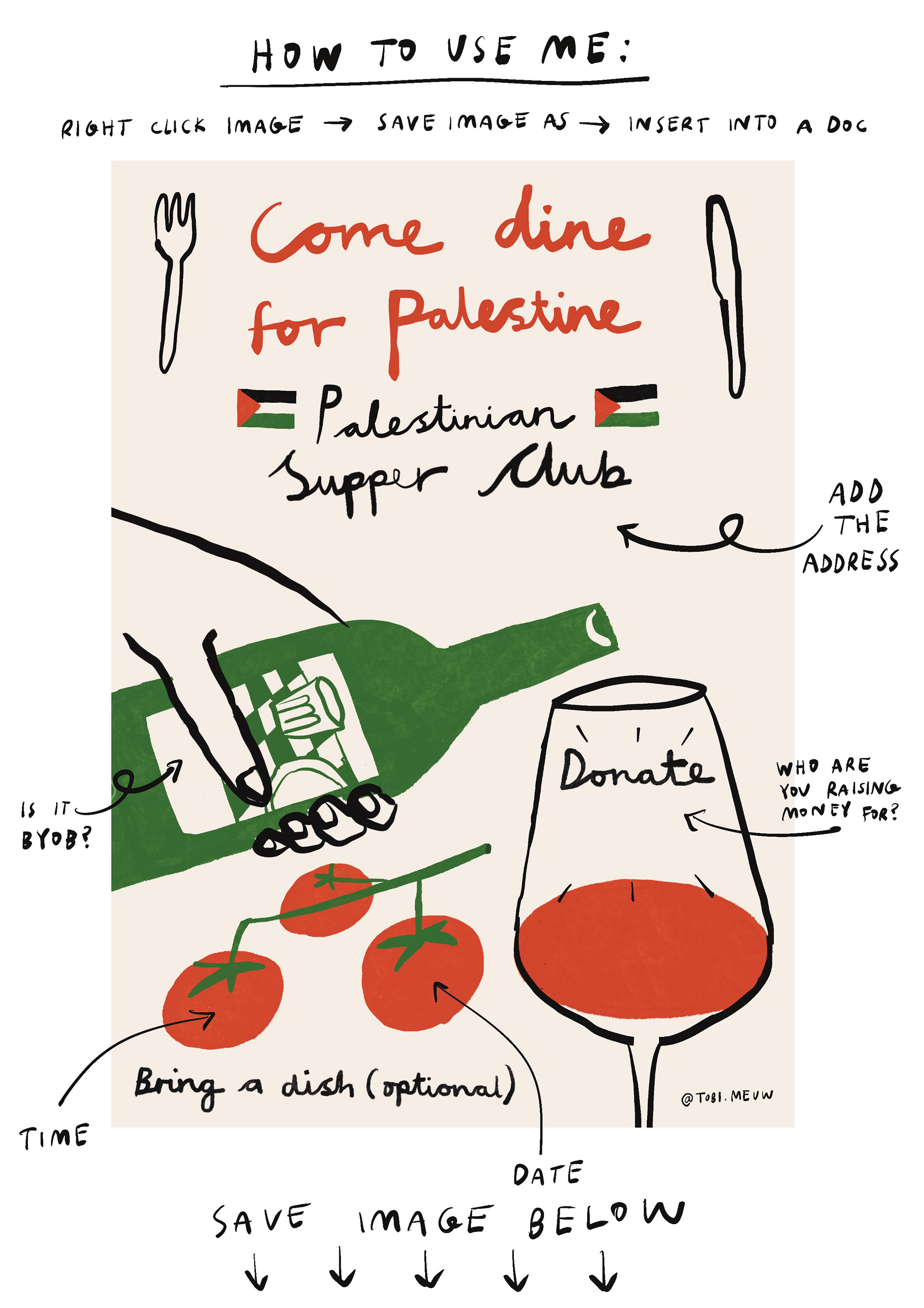 Would you like to host a supper club and raise money for Palestinians in need? Download this poster, fill in the details, and share it with your friends.