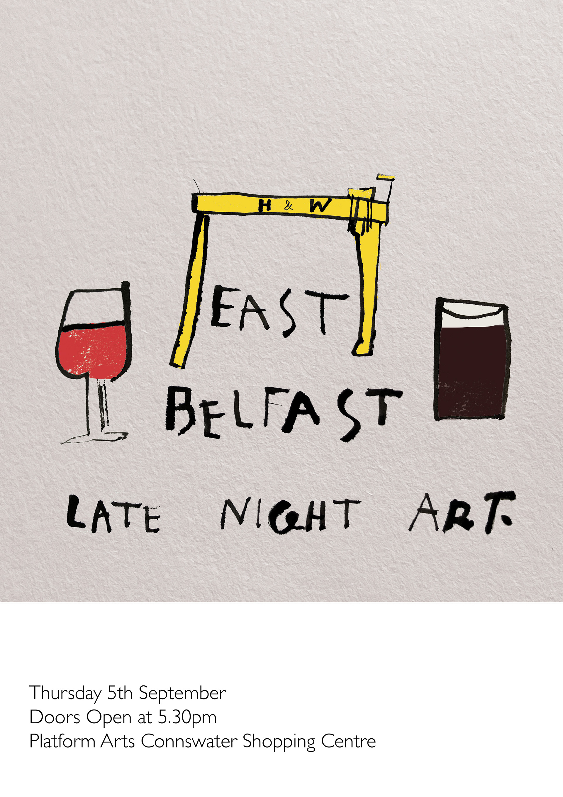 A poster design to promote the launch of the Late Night Art in East Belfast.